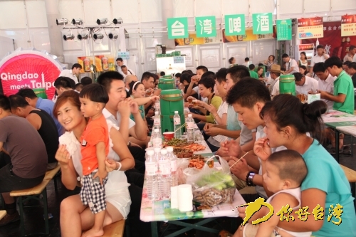 你好臺灣網(wǎng)8月24日消息 (通訊員 李慧 王霞)走進啤酒城南門向前約300米,在青島國際會展中心6號館南廣場遠遠望去,青島與臺北兩大城市的代表性地標“五月的風”和101大樓雕塑,與斜跨在展館門頭醒目的“臺灣”二字相輝映,闡釋“青島遇見臺北”的主題。正在如火如荼進行的第23屆青島國際啤酒節(jié)上,獨具風情的臺北演藝館吸引了眾多游客的目光,演出場場爆滿,“哈”兩岸美酒,品臺灣風情,兩岸游客共同舉杯上演著一場場兩岸一家親的溫馨與激情的畫卷。