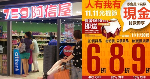 香港零售連鎖店“阿信屋”在今年雙11推出多檔折扣。圖自《明報》網站