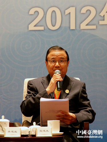 臺(tái)灣冠捷科技集團(tuán)董事長(zhǎng)宣建生在兩岸雙向投資專題論壇發(fā)言。(中國(guó)臺(tái)灣網(wǎng) 芮益芳 攝)