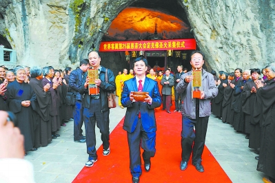 同時,武平縣成立定光佛世遺申報小組,組織人員對定光佛信俗進行收集、整理,并將已發掘、普查、研究的成果,包括文字、音像、實物給予分類整理,專柜陳列;加強對定光佛信俗的學術研究,發掘其文化內涵;引導本地定光佛信俗人員開展原生態的信俗活動,使定光佛信俗得以傳承和發揚。