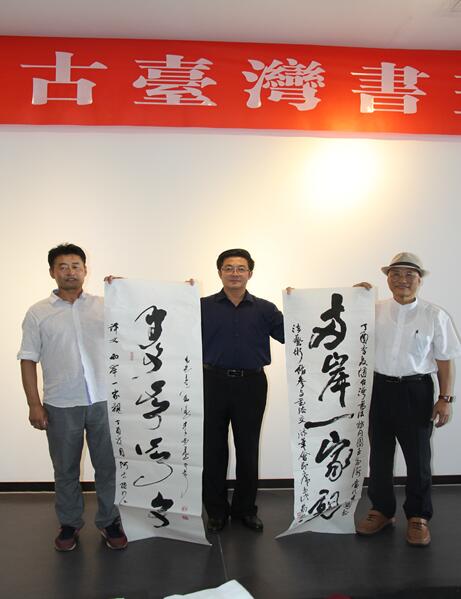 8月2日下午,參展的臺灣、烏海兩地書畫家在當代中國書法藝術館進行了現場書畫交流,自治區臺辦主任楊利民、臺灣書法家內蒙古參訪團團長宋建華出席了活動。
