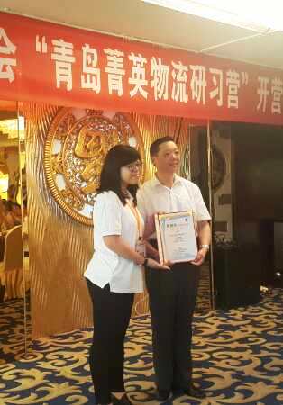 菁英物流研習營團長—臺灣中原大學學生高秦涵代表全體營員向山東省、青島市臺辦贈送了感謝狀。