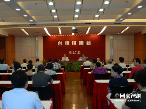 中國臺灣網8月2日上海消息 7月31日下午,民主黨派大廈六樓報告廳內座無虛席,上海國際問題研究院臺港澳研究所所長嚴安林應上海市臺聯邀請,為在滬臺胞做了關于近期兩岸關系發展的臺情報告。上海市臺聯會長林明月出席報告會,報告會由上海市臺聯副會長甘平主持,八十余位臺胞認真聆聽了報告。