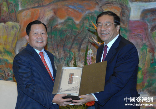 會見結束時,賓主互贈紀念品。楊曉渡贈予富春山居圖(復制品),劉政鴻還以當地出產的草莓酒和玉佛。