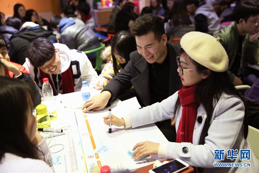 1月6日,在上海同濟大學,參加研習營的學生在工作坊活動中討論小組項目。當日,第二期同濟大學-紫荊谷創新創業研習營在同濟大學啟動。本屆研習營吸引來自海峽兩岸及香港澳門高校的70余名學子參加。