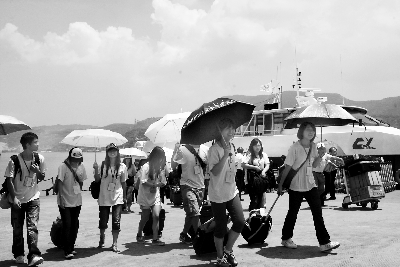 17日上午11時40分,由100名馬祖學(xué)生組成的馬祖世博游旅行團(tuán),經(jīng)“兩馬”航線抵達(dá)福州馬尾港。福州邊檢站為旅行團(tuán)啟動快速通關(guān)服務(wù),僅用15分鐘就完成了旅行團(tuán)的通關(guān)工作。王鵬 攝