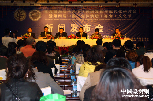 第九屆海峽兩岸中華傳統文化與現代化研討會暨第四屆中國·介休清明(寒食)文化節新聞發布會。(中國臺灣網 董潔 攝)