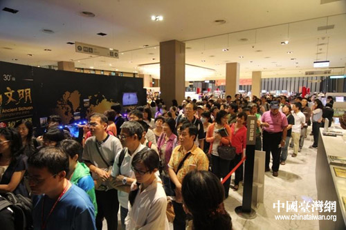 開展前,觀眾人潮如織,排起了長龍。(圖片來源:四川省臺辦)