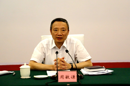四川省臺(tái)辦主任周敏謙在座談會(huì)上講話。(圖片來源:四川省臺(tái)辦)
