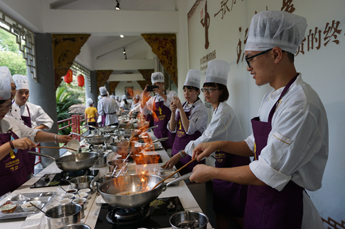中國臺灣網(wǎng)7月20日四川訊 麻辣火鍋、回鍋肉、水煮魚、麻婆豆腐、夫妻肺片……說起川菜,全天下的食客都激動不已。7月12日,由四川省臺灣同胞聯(lián)誼會、成都市臺灣同胞聯(lián)誼會主辦,西南交通大學協(xié)辦的“全國臺聯(lián)2017年臺胞青年千人夏令營四川·成都分營活動”走進成都川菜博物館,了解川菜知識,體驗川菜文化傳承,學習制作經(jīng)典川菜。大家盛贊:“好棒的活動,充實又有成就感!”