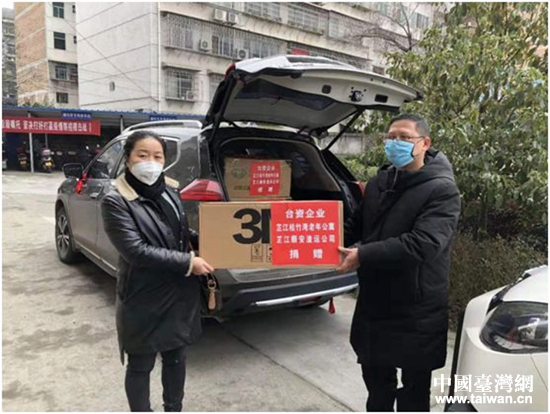 1月31日,懷化市臺企臺胞向一線工作人員捐獻口罩。 (中國臺灣網 發)