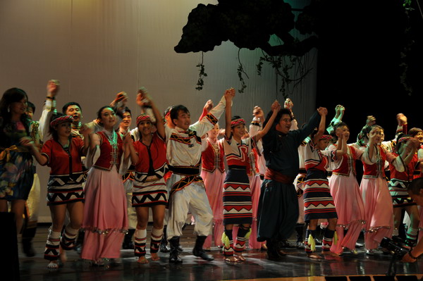 16日,文化交流團(tuán)來(lái)到臺(tái)北市烏來(lái)鄉(xiāng)原住民部落烏村進(jìn)行文化交流演出。來(lái)村劇場(chǎng)每天上下午上演舞劇《發(fā)現(xiàn)烏來(lái)》,向人們?cè)V說(shuō)者泰雅族人誕生的傳說(shuō)。文化交流團(tuán)演員們觀看了由20多名泰雅族年輕人表演的泰雅族舞劇后,感慨萬(wàn)分,他們都是用歌舞傳唱著民族的歷史和文化。