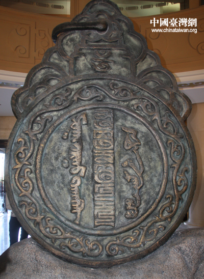元代五體文夜巡牌是目前國內外發現的唯一的多種文圓牌(中國臺灣網 陳寧 攝)