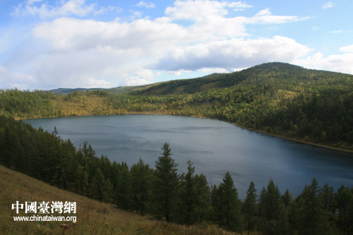 阿爾山天池位于阿爾山東北74公里天池嶺上,海拔1332.3米,有484級臺階。如果從天空俯視天池,天池像一滴水滴。按海拔高度,阿爾山天池在天山天池、長白山天池之后,居全國第三。(中國臺灣網 陳寧 攝)