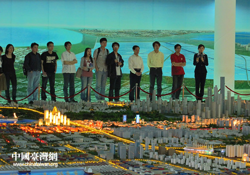 交流團參觀濱海新區規劃建設展館(圖片來源:天津臺辦)
