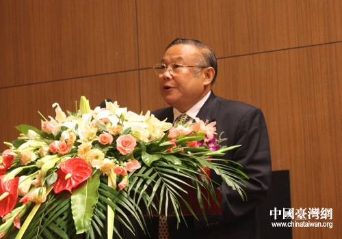 全國(guó)臺(tái)聯(lián)副會(huì)長(zhǎng)、天津臺(tái)聯(lián)會(huì)長(zhǎng)蔡世彥作主題發(fā)言。(圖片來(lái)源:天津市臺(tái)辦)