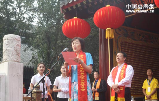 國務院臺辦交流局局長黃文濤宣讀《關于同意在天津天后宮設立海峽兩岸交流基地的批復》。(中國臺灣網 吳曉寒 攝)