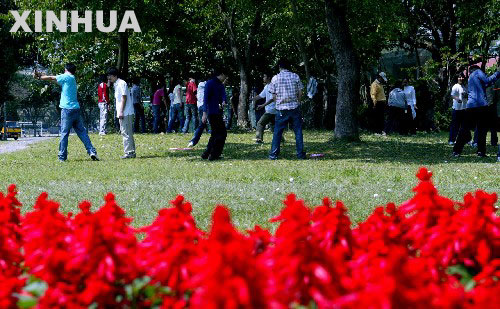 資料圖:2005年3月21日,臺灣大學學生在學校內上體育課。陽春三月,臺灣大學校園內處處春意盎然、花香鳥語,整個校園呈現繽紛色彩。 新華社記者 賴向東 攝