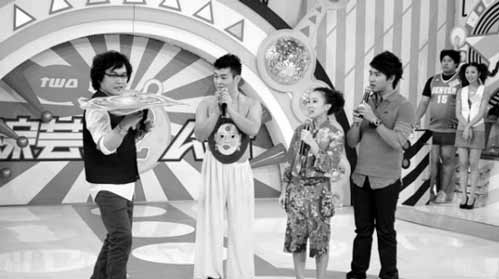 節目開場由毛毛與王金龍打頭炮,兩人載歌載舞,王金龍還展示了最拿手的模仿大猩猩和高空拋手帕并穩當接進衣服里的絕活,贏得了現場觀眾的尖叫聲和掌聲一片。毛毛自然也是亮出自己高亢嗓音的才藝,一曲震驚四座。作為本山弟子當中的大師兄,張小飛與妻子賀美玲自然也是不甘落后,張小飛惟妙惟肖的五官表演和翻跟斗打把式的招式,同樣獲得了熱烈的掌聲。4位二人轉藝人的精彩表演,讓一貫見識頗廣的臺灣知名主持人康康和歐弟等人大呼過癮,模仿能力超強的歐弟聲稱“自己有了壓力”。