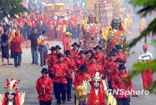 中新社泉州十月二十九日電 (孫虹 曾福志)為慶祝“媽祖信俗”入選聯(lián)合國人類非物質(zhì)文化遺產(chǎn)代表作名錄,“二OO九溫陵媽祖會”二十九日在僑鄉(xiāng)泉州天后宮隆重舉辦,來自臺灣的三百多位嘉賓到場觀摩。