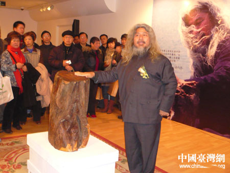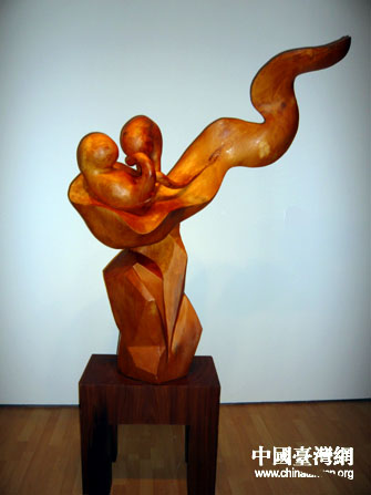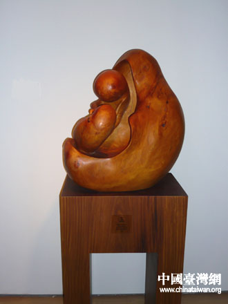 開(kāi)幕式上,康木祥為來(lái)賓介紹了用紅檜、梢楠、牛樟等木材雕刻而成的“圣嬰”、“向上”、“深情”、“母子”、“良緣”等作品。這些作品雖形態(tài)各異,但有一個(gè)共同特點(diǎn),就是充分利用樹(shù)木的形狀、裂縫、紋理,盡情展示生命的最初形態(tài)和原始美感。在介紹到作品“包容”時(shí),康木祥說(shuō),這是他迄今為止難度系數(shù)最大的一件作品,在創(chuàng)作過(guò)程中,手被敲傷、割破多次。說(shuō)這番話時(shí),他的臉上露出淡然的微笑。