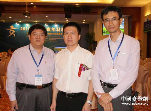 臺灣農業旅游發展協會副秘書長洪崇仁(右)、負責人陳澤俊(左)與國臺辦交流局處長馬振杰(中)合影(中國臺灣網 孫金誠 攝)