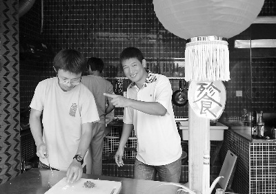 馬克的廚房就設(shè)在院子邊,是敞開式的,所以當我們饑腸轆轆地從曾厝垵的海邊過來時,以為那是一家對外營業(yè)的餐吧。穿著白色短袖T恤正熟練地顛著炒鍋的馬克直搖頭,說他們做的是自家飯菜。以我在臺灣駐點采訪的經(jīng)驗,一下就從口音中聽出馬克是臺灣人,而馬克得知我曾在臺灣呆過,就熱情地邀我們一起進餐。于是,在臺式鹵肉飯、日式味曾湯、印尼式咖喱土豆和黑胡椒奶油白菜的香味中,我知道了臺北人馬克與廈門的故事。