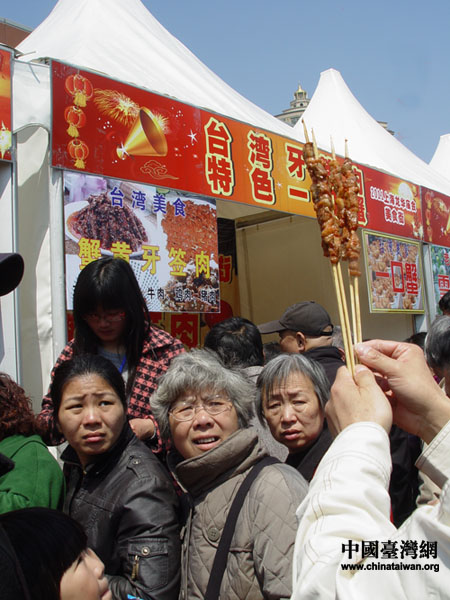 臺灣美食讓龍華廟會游客驚喜連連(攝影 馮聯清)