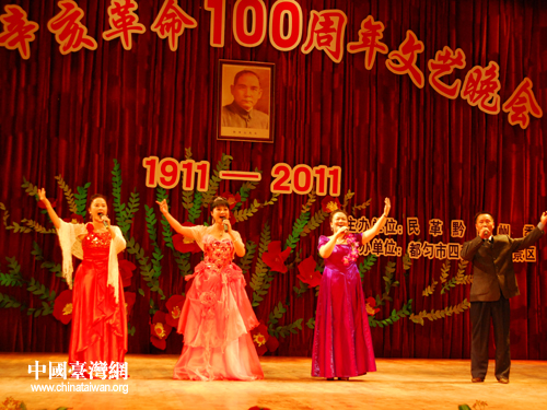 民革黔南州委主委、副主委與臺(tái)屬代表一起朗誦《辛亥百年》、《辛亥之歌之緬懷孫中山先生》。文藝晚會(huì)在大家高唱《我愛(ài)中華》聲聲中落下帷幕。(中國(guó)臺(tái)灣網(wǎng)貴州通訊員 羅世云)