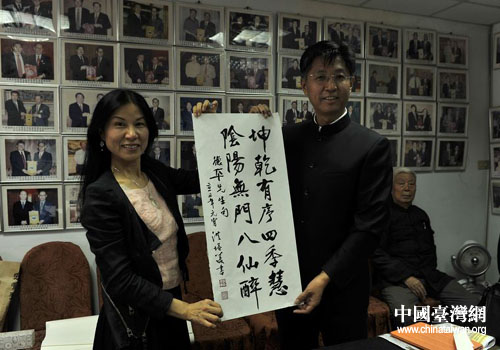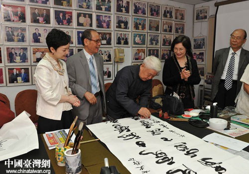 中國(guó)臺(tái)灣網(wǎng)2月26日高雄消息 日前,應(yīng)中華海峽兩岸企業(yè)交流協(xié)會(huì)的邀請(qǐng),由北京市臺(tái)辦公室副巡視員杜德平率領(lǐng)的“北京特色周”參展團(tuán),在高雄舉辦了“京臺(tái)兩岸書畫家交流筆會(huì)”。程茂全、譚軍立、王靜和康景文、蕭季慧、楊濤、洪塔美等京臺(tái)書畫名家參加了交流筆會(huì)。
