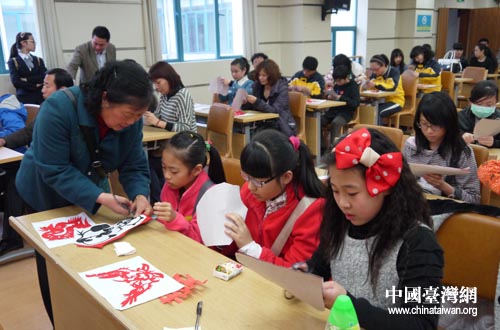 兩岸小朋友一起參加剪紙培訓(xùn)。