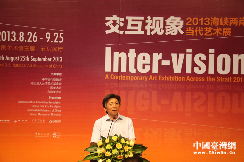 由中華文化聯(lián)誼會、臺灣美術(shù)基金會、中國美術(shù)館、臺灣美術(shù)館聯(lián)合主辦的“2013海峽兩岸當(dāng)代藝術(shù)展”,8月26日在中國美術(shù)館開幕,中國美術(shù)館館長范迪安在開幕式上致辭。(中國臺灣網(wǎng) 蕪?fù)?攝)