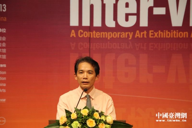 由中華文化聯(lián)誼會、臺灣美術(shù)基金會、中國美術(shù)館、臺灣美術(shù)館聯(lián)合主辦的“2013海峽兩岸當(dāng)代藝術(shù)展”,8月26日在中國美術(shù)館開幕,臺灣美術(shù)館副館長張仁吉在開幕式上致辭。(中國臺灣網(wǎng) 蕪?fù)?攝)