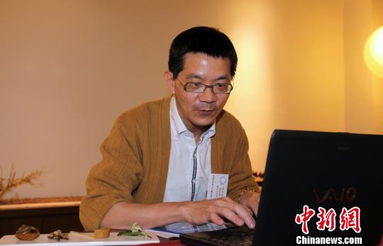 11月20日,漢光人聲創(chuàng)意劇團(tuán)年度音樂(lè)會(huì)在臺(tái)北中山堂舉行。圖為漢光創(chuàng)藝總經(jīng)理朱玉昌接受大陸駐臺(tái)媒體訪(fǎng)問(wèn)。 劉舒凌 攝