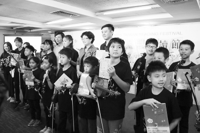 在閱讀節(jié)上,臺(tái)北市士東小學(xué)弦樂(lè)團(tuán)的孩子們獲贈(zèng)精彩的童書。