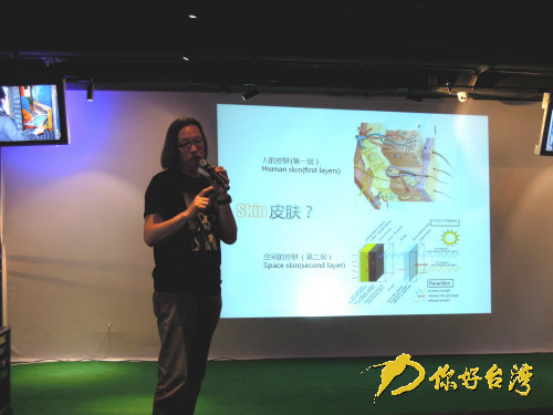 上海工程技術大學中韓多媒體設計學院副院長吳亞生發(fā)表題為《未來,我們文明的皮膚在拓展》的演講,關注人類文明作為一種「皮膚」,其本身存在的一種狀態(tài)。(你好臺灣網(wǎng) 圖)