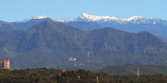 強烈大陸冷氣團來襲,近來臺灣高山群大雪紛飛,成了銀色世界。玉山白頭在平地清晰可見,十分罕見;在嘉義縣民雄鄉住了近十年的曾小姐,驚訝表示沒在民雄看過如此清楚的玉山雪景。