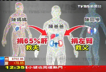 中國臺灣網12月6日消息 據臺灣TVBS電視臺報道,臺灣南投上演親情大戲,有一位47歲的陳先生肝腎嚴重衰竭,必須接受肝腎移植才能延續生命,而陳先生的血型和器官組織和妻兒正好吻合,最終妻子決定捐肝挽救丈夫,兒子也決定捐出左腎。明天一家3口要同時進行活體肝腎移植。