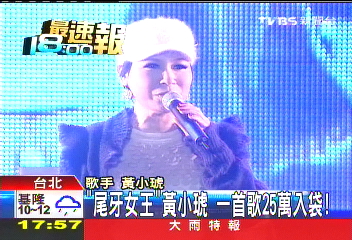 中國臺灣網(wǎng)1月9日消息 據(jù)臺灣TVBS電視臺報道,春節(jié)臨近,臺灣企業(yè)的尾牙活動一場接一場,藝人們則跟著大撈一筆,誰是企業(yè)最愛的藝人?“滅絕師太”黃小琥以超過30場封后,堪稱“尾牙女王”。其中,參加日盛金控一場尾牙活動,她只唱了4首歌就賺了100萬(新臺幣,下同),平均一首歌入賬25萬,共唱了40分鐘,1分鐘凈賺25000元。