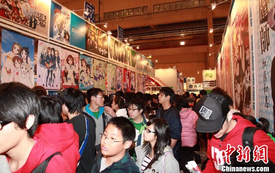 2月9日,第19屆臺北國際書展正式開幕,其中動漫主題館吸引了大批民眾前往購閱,各個展位前被擠得水泄不通,甚至有小朋友席地而坐等候購買或結賬,大有“爆棚”之感。中新社記者 符永康 攝