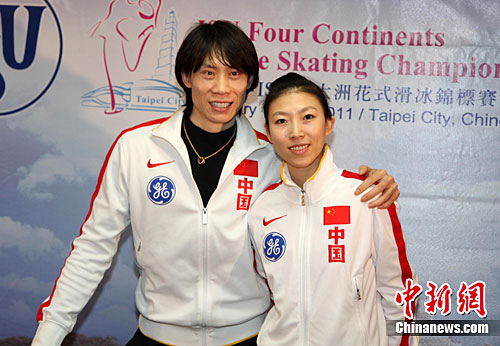 2月15日,中國花樣滑冰隊情侶名將龐清、佟健亮相臺北,出席當天舉行的2011年ISU四大洲花式滑冰錦標賽記者會。此前他們已經4次奪得四大洲賽冠軍。符永康 攝