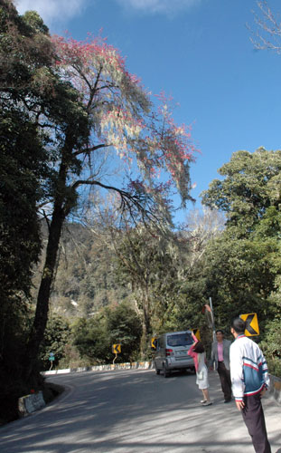 臺灣南橫公路向陽游樂區附近的百年原生種櫻花古樹已經陸續綻放,蒼勁樹干、艷紅的花朵,披上地衣,給人不同的感受。 圖片來源:“中央社”