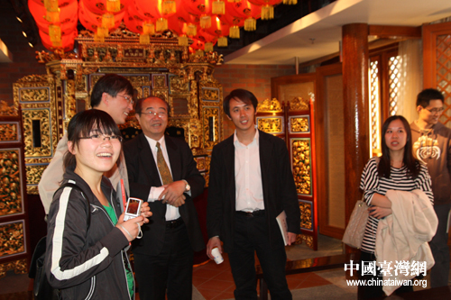 中國臺(tái)灣網(wǎng)4月10日北京消息 昨天下午,來自清華大學(xué)、北京大學(xué)等多所高等院校的兩岸學(xué)子在北京市臺(tái)灣同胞聯(lián)誼會(huì)副會(huì)長鄭大的引領(lǐng)下,來到坐落于北京市前門地區(qū)的臺(tái)灣會(huì)館進(jìn)行參觀學(xué)習(xí)。在主題為“中華魂·京臺(tái)情”京臺(tái)交流史展覽中,兩岸學(xué)子感受到了百余年來臺(tái)灣會(huì)館的歷史變遷、京臺(tái)交流的新篇章以及祖國人民對寶島同胞的深厚情誼。