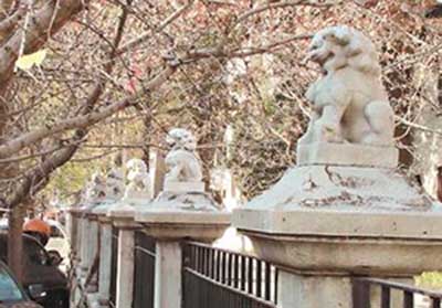 校區鐵欄桿上的石獅子,每只都不同,保護十分完整。據臺灣《聯合報》