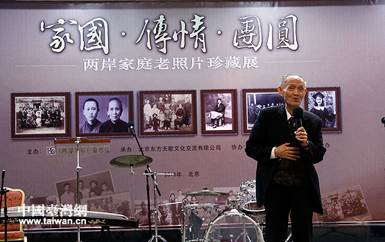中國臺灣網11月21日北京消息 11月21日,由《兩岸關系》雜志社主辦,北京東方天歌文化交流公司承辦,北京臺灣會館、北京市西城區臺辦協辦的“家國·傳情·團圓”——兩岸家庭老照片珍藏展開幕式在北京臺灣會館舉行。國臺辦交流局局長程金中,全國臺聯副會長楊毅周,國臺辦信息中心主任仇開明,九洲文化傳播中心副主任賀瑋,《兩岸關系》雜志社法人代表、主持工作副社長鐘河林、總編輯汪舟,中國臺灣網總經理兼總編輯劉曉輝,臺灣中州科技大學董事長柴御清,2012年感動中國人物高秉涵,臺商劉竹承等來自海峽兩岸的嘉賓、媒體記者200多人參加了開幕式。
