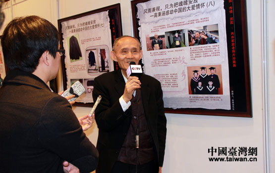 2012年感動(dòng)中國(guó)人物高秉涵接受記者采訪。(中國(guó)臺(tái)灣網(wǎng) 李丹 攝)