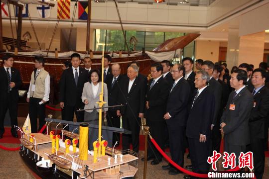 在張榮發(fā)基金會一樓,陳德銘一行還參觀了珍貴的清代船只模型。(完)