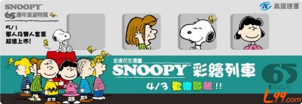高雄捷運全球首部SNOOPY 65周年彩繪列車3日舉行首航。據臺灣媒體報道,臺灣高雄捷運公司3日啟動史努比(SNOOPY)彩繪列車,高捷董事長郝建生宣布,配合彩繪列車啟動,今天兒童節,兒童及穿著史努比衣服的民眾都可免費搭乘高雄捷運。