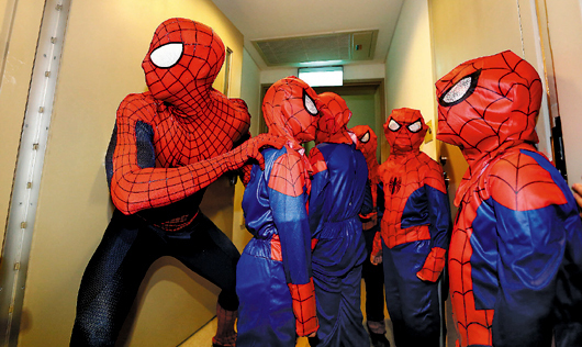 蜘蛛人帶著10名可愛的小蜘蛛人接力試爬到36樓。