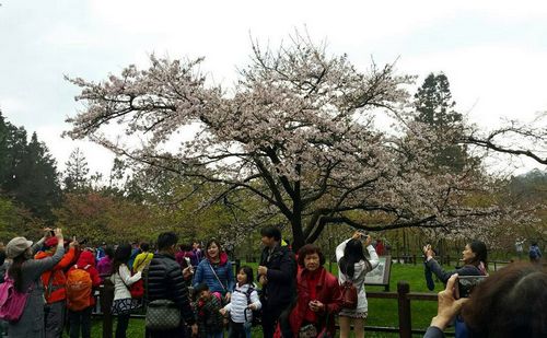 嘉義林管處阿里山工作站指出,工作站前的一棵“櫻王”,是在1918年從日本吉野縣移植而來,每年都最早開花。櫻王20日幾乎滿開,雖然這兩天假日,天空持續飄著雨,仍吸引游客拍照留念。